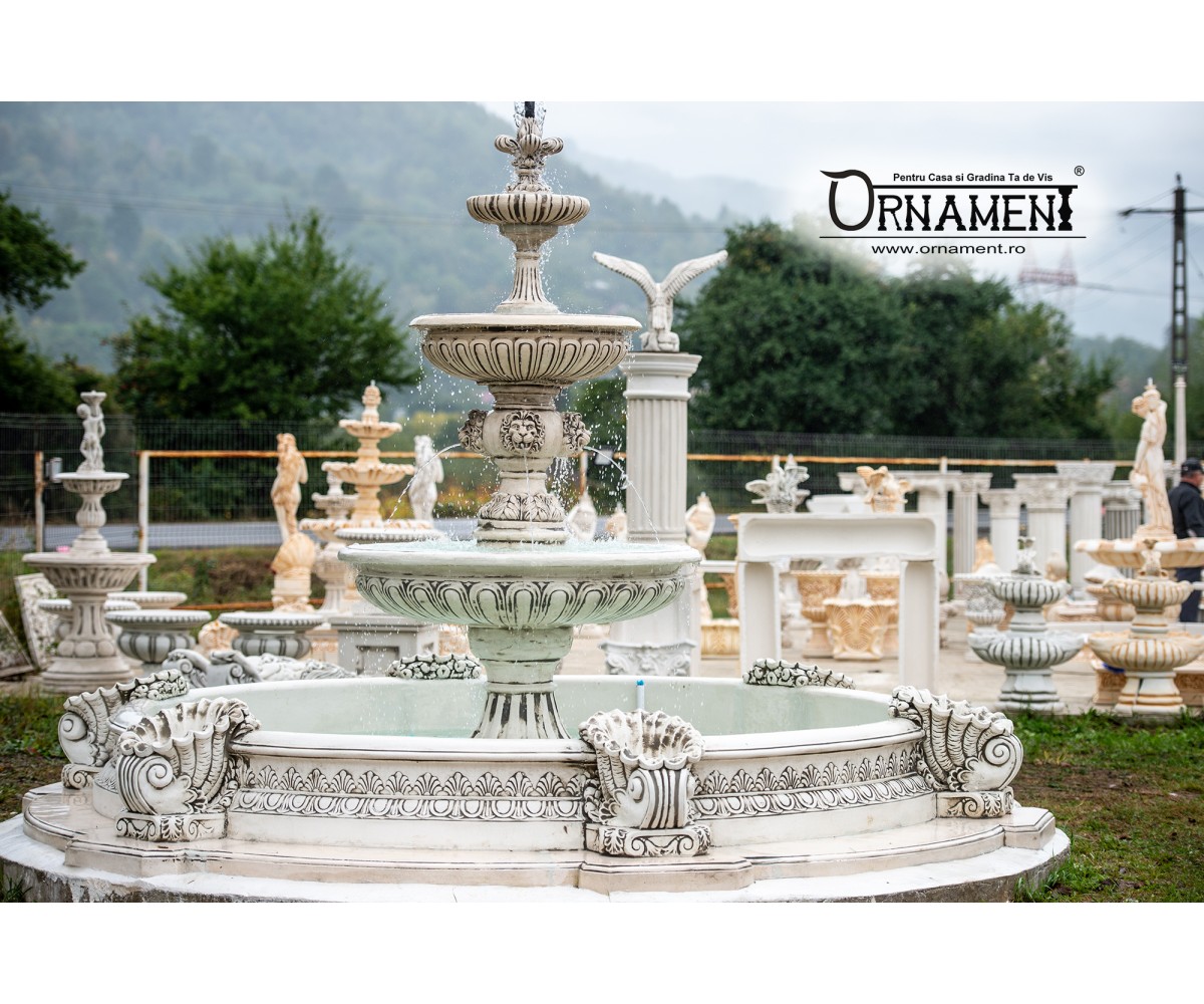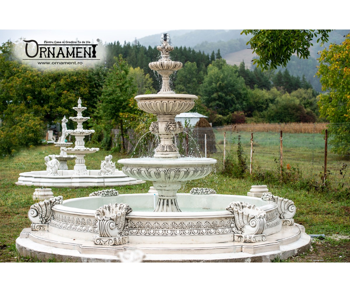 Un bazin stilat si cochet cu motive sculptate de jur imprejur care are in compozitie sase ghivece pentru a crea un impact vizual puternic gradinii, acesta este bazinul sau havuz-ul Imperio. In ghivece se poate planta flori. Pentru montaj va trebui turnata o placa de sustinere care are si rol de fund al bazinuluui. Pentru lipirea segmentiolor de aceasta placa se va folosi o compozite speciala de ciment, testata cu succes de noi, pentru a nu pierde apa din bazin. Aceasta reteta se va regasi pe DVD-ul cu instruciunile de montaj si daca se va respecta intocmai reteta nu va mai fi nevoie de alte solutii impermeabilizare.