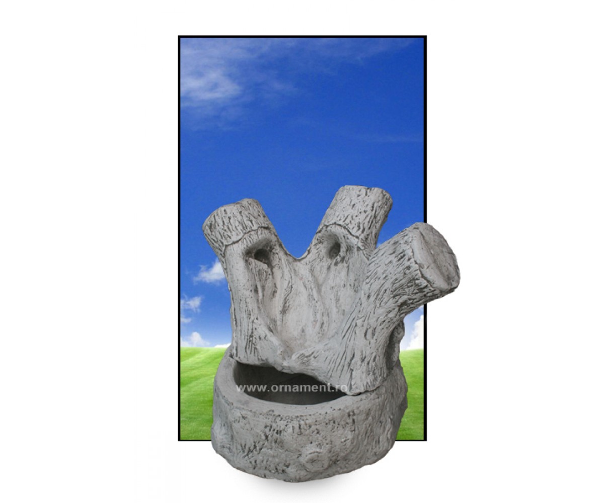 Inconjurata de plante si scaune confortabile Fantana arteziana decorativa Cioata va face centrul gradiniii dumeavoastra mult mai captivant si relaxant. Apa va curge din cele trei orificii ale cioatei revarsandu-se in bazin. Pentru a functiona este nevoie de o pompa submersibila pentru recircularea apei care se poate achizitiona separat.