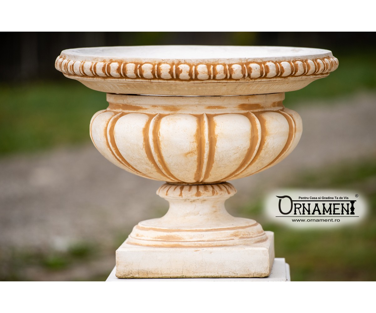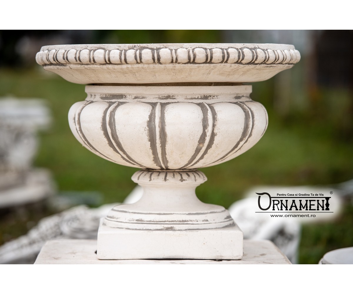 Un model care scoate in evidenta simplitatea si luxul. Acest ghiveci reprezinta o reconstituire fidela dupa faimoasa si exclusivista gradina a Cazinoului din Sinaia. Ghivecele pentru flori pot fi alese astfel incat sa constituie o piesa de decor in gradina sau in orice loc in care dorim sa amplasam florile. Florile sau semintele pot fi plantate direct in pamantul din interioru ghiveciului, astfel contribuie la cresterea armonioasa a plantelor. Este conceput cu gauri pentru a drena apa eficient atunci cand udam florile.