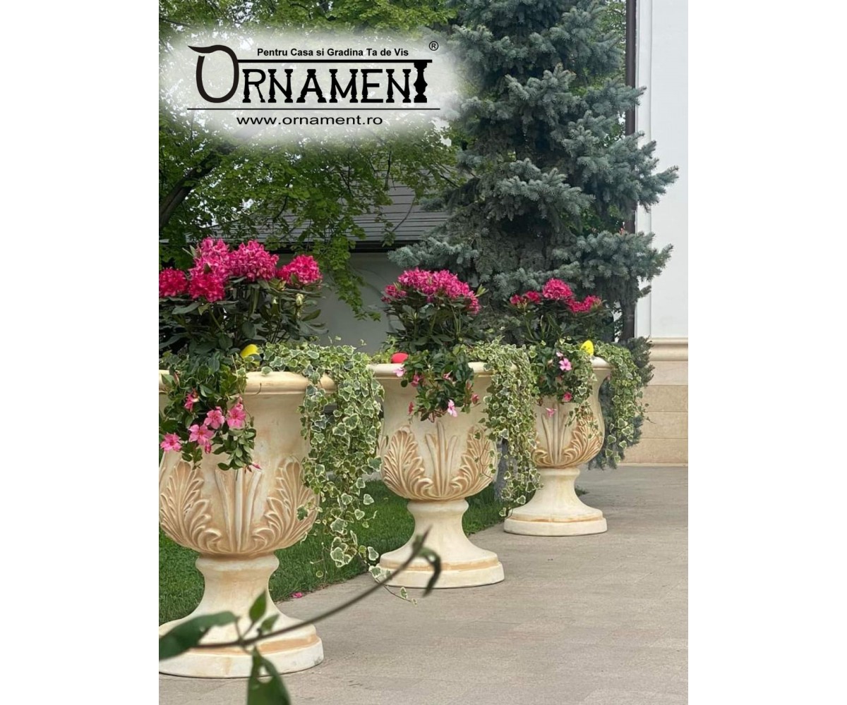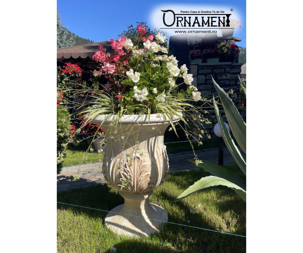 Un ghiveci de dimensiune mare care poate adaposti plante si flori de dimensiuni mari, chiar si tuia. Ghivecele pentru flori pot fi alese astfel incat sa constituie o piesa de decor in gradina sau in orice loc in care dorim sa amplasam florile. Florile sau semintele pot fi plantate direct in pamantul din interioru ghiveciului, astfel contribuie la cresterea armonioasa a plantelor. Este conceput cu gauri pentru a drena apa eficient atunci cand udam florile.