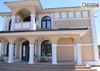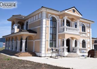 S-a dorit executarea unei fatada de casa dupa un proiect deja conceput dupa schite si randari existente. Primul pas a fost realizarea sabloanelor dupa care am am realizarea, la comanda, elementele decorative personalizate pentru aceasta fatada. Toate profilele si ornamentele decorative Ornament sunt realizate din MarmoTEK pentru a rezista impotriva umiditatii, a razelor UV, a frigului excesiv si a vantului puternic.
