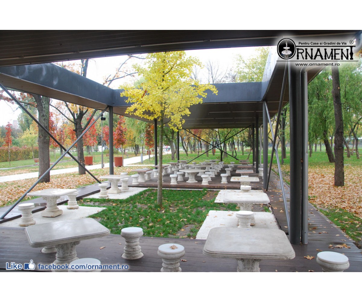 Masa Patrata este compusa din : Blatul mesei, piciorul si doua scaune. Se pot monta atat in gradina, cat si in parcuri datorita rezistentei sporite pe care o au.