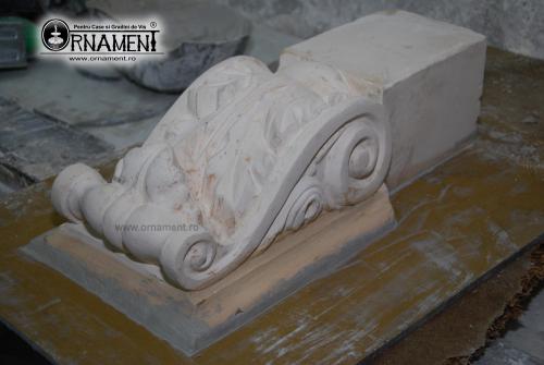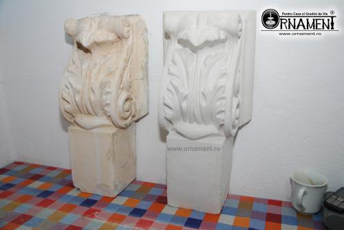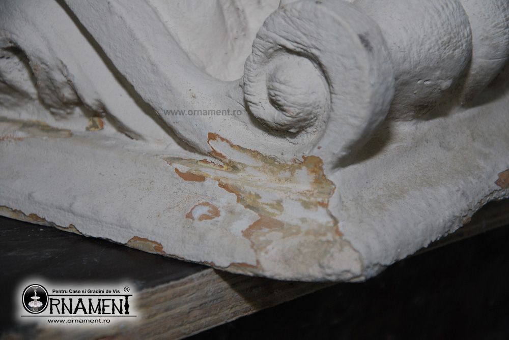 Se va decapa mecanic si chimic piesa de straturile vechi de tencuiala si var, se va repara si se va confectiona matrita cu care se vor multiplica piesele.
