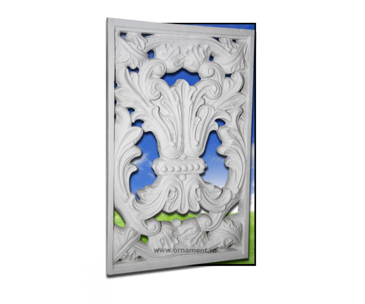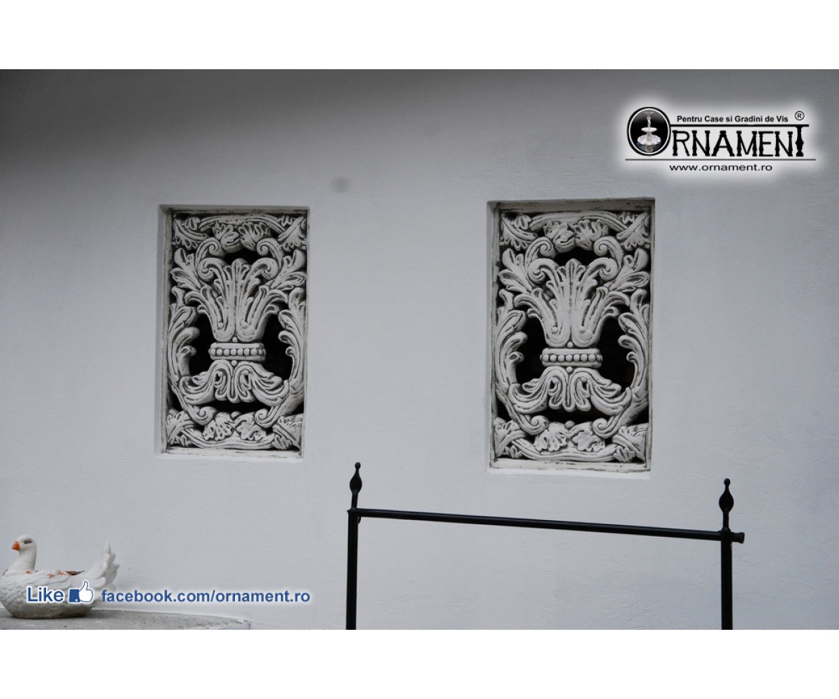 Trafor arhitectural Neoromanesc, perforat, cu sculptura in forma de vita de vie simbol al vietii.
